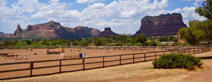 If you've dreamed of riding your horse in the Red Rocks of Sedona, Arizona, you just found the place to make your dreams a reality. Whether you're an English arena rider or a Western trail rider, Horse Mesa Ranch will fulfill your needs. We offer stunning views from our large, full-featured arena and beautiful trails through Juniper pines, right off our property. If you're traveling and require boarding while visiting Sedona, we will be happy to accomodate you. We think you will be pleased with our facilities and the care provided for your horse. We boast over 40 years continuous operation.